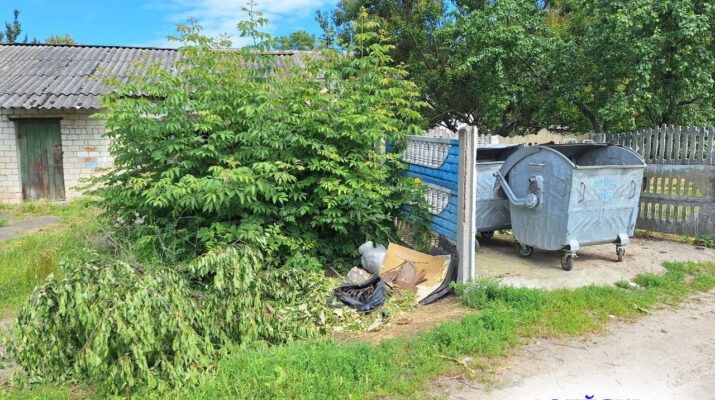 Уверенно тянущаяся к солнышку дикая древесно-кустарниковая растительность была обнаружена корреспондентом «ЛК» прямо в центре горпосёлка. Неподалёку от баннера с Алексеем Талаем только ленивый не